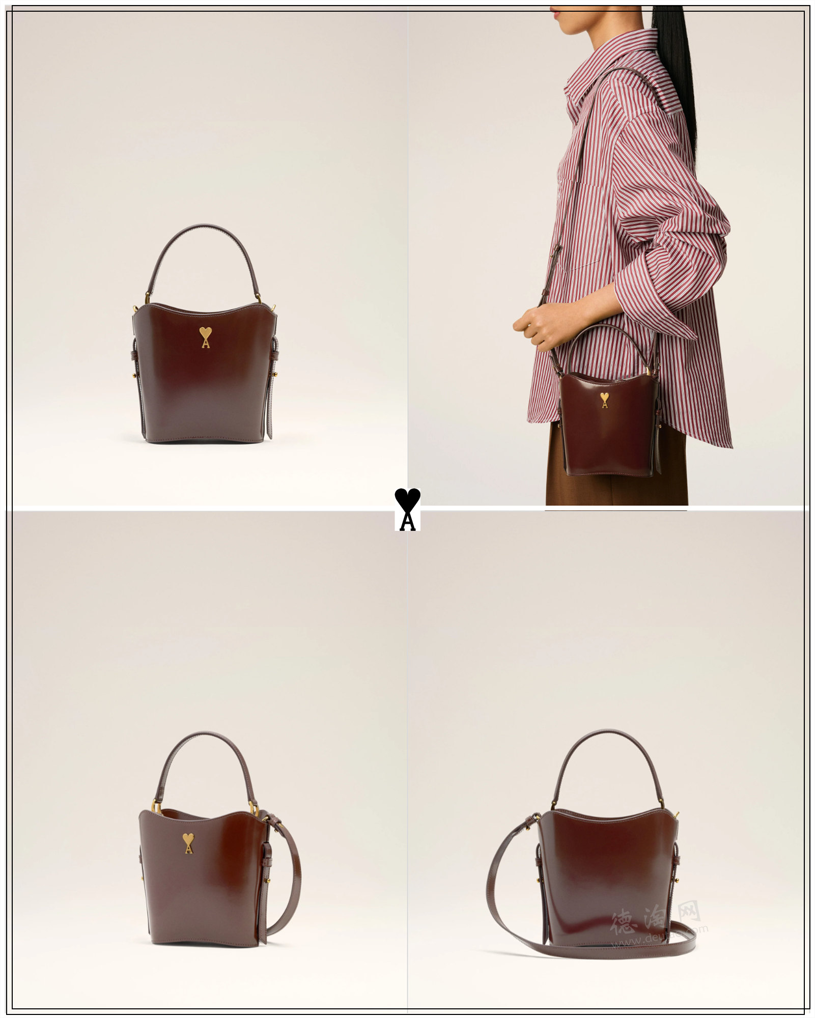 • 【AMI Paris 酒红色漆面小牛皮水桶包 折后仅504欧,原价720欧!】 将细节设计与多种背法结合,满足都市日常与轻旅行需求。可调节手柄,手提、肩背或斜挎随心切换。上等小牛皮材质光泽感细腻,耐用又高级。拉绳收口设计,主隔层柔软羊皮内衬,保护包内物品。Ami de Coeur铆钉点缀,刷砂铜色金属配件,凸显精致感。