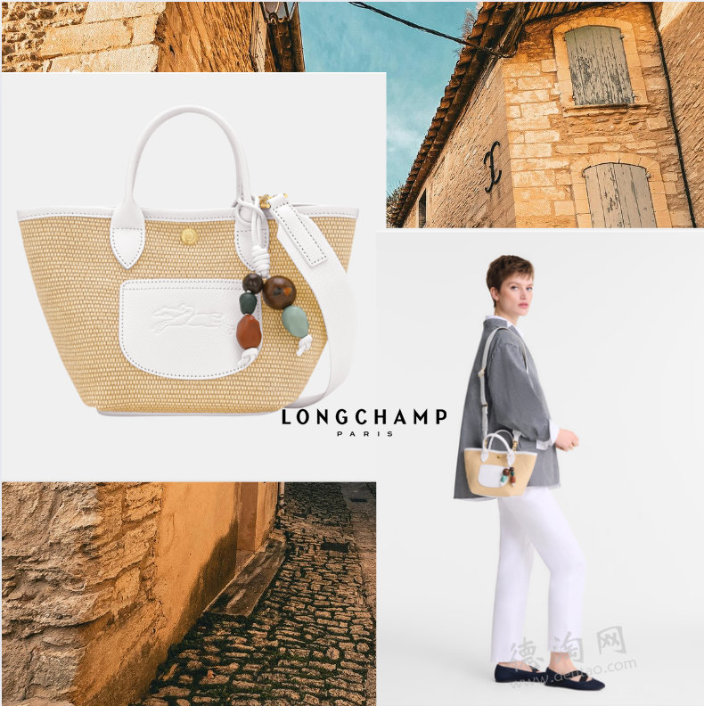 【Longchamp/珑骧 Collection XS手提草编包 特价仅256欧,原价320欧!】 将艺术感与实用性完美融合,外观灵感源自陶瓷雕塑,珠饰挂件点缀其中,带来手工艺术魅力。手柄、内袋与包边采用小牛皮,搭配稻草质感帆布,呈现优雅层次小巧迷你尺寸轻松携带日常必需品,适合都市短途出行或休闲造型。创意与现代感兼具,让日常穿搭自然多了一份精致感。